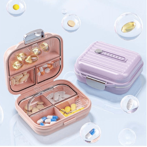 Con un diseño ergonómico y tamaño compacto, nuestro pastillero de viaje cabe fácilmente en tu bolso, maleta o bolsillo, ocupando poco espacio.